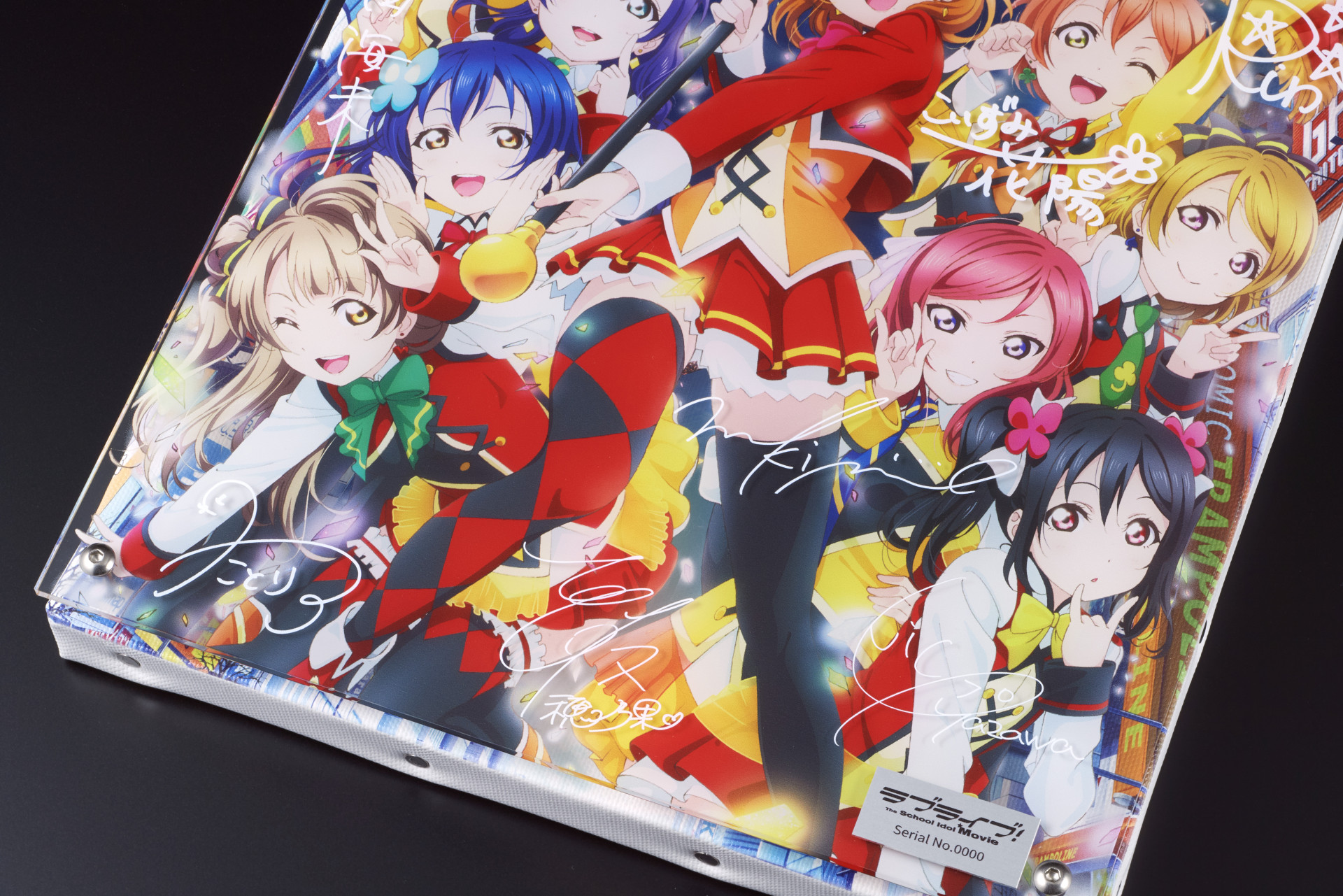 背景、メンバーイラスト、サインをそれぞれ異なるレイヤーで印刷した、立体的に鑑賞可能なアイテムです。