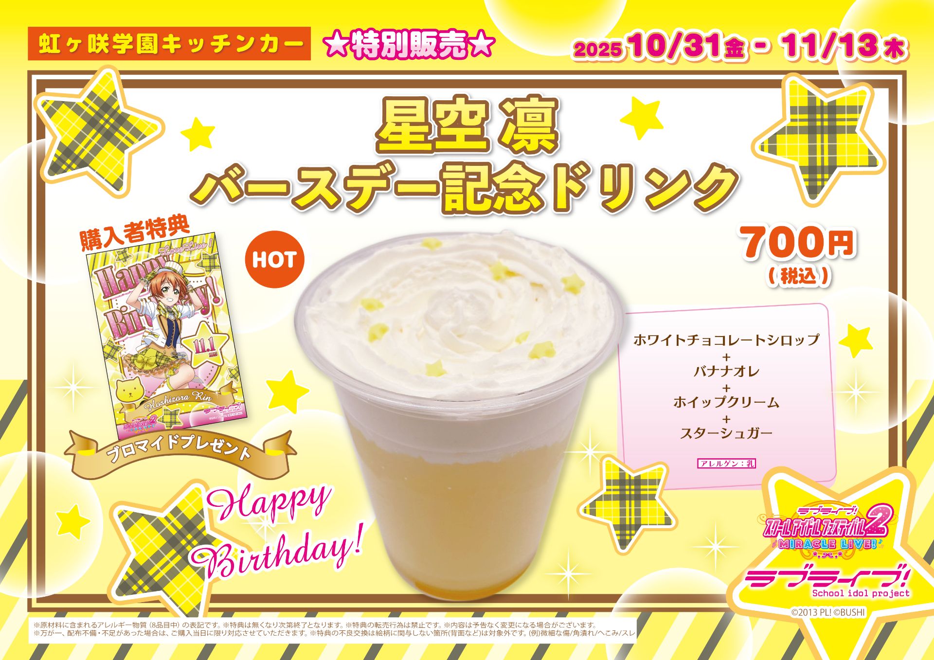 虹ヶ咲学園キッチンカー6周年記念ドリンク販売のお知らせ