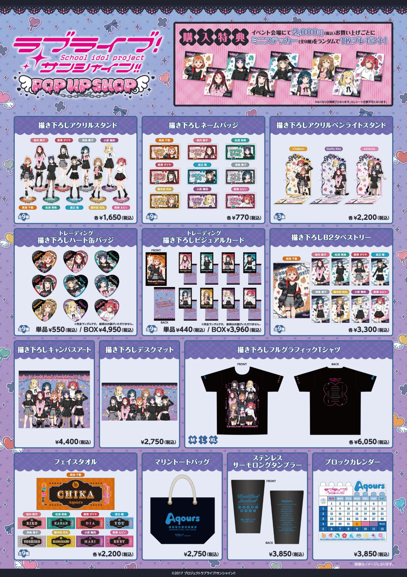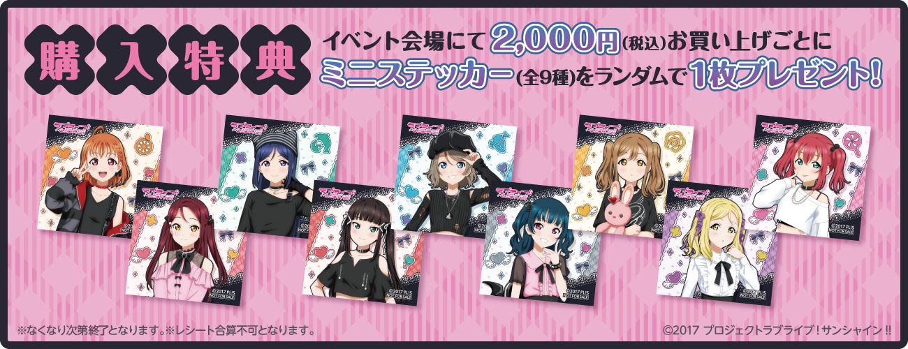 税込み2,000円ご購入ごとに、ミニステッカー(全9種)をランダムで1枚プレゼントします。