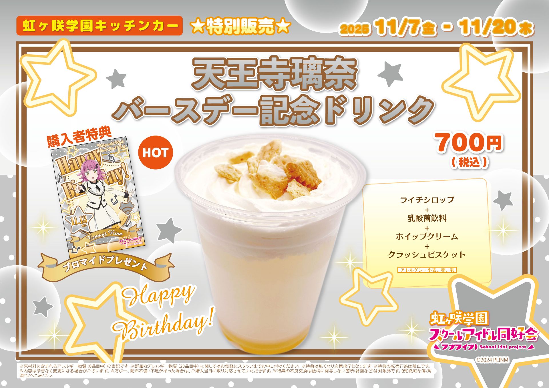「虹ヶ咲学園キッチンカー」よりバースデー記念ドリンクメニュー販売のお知らせ